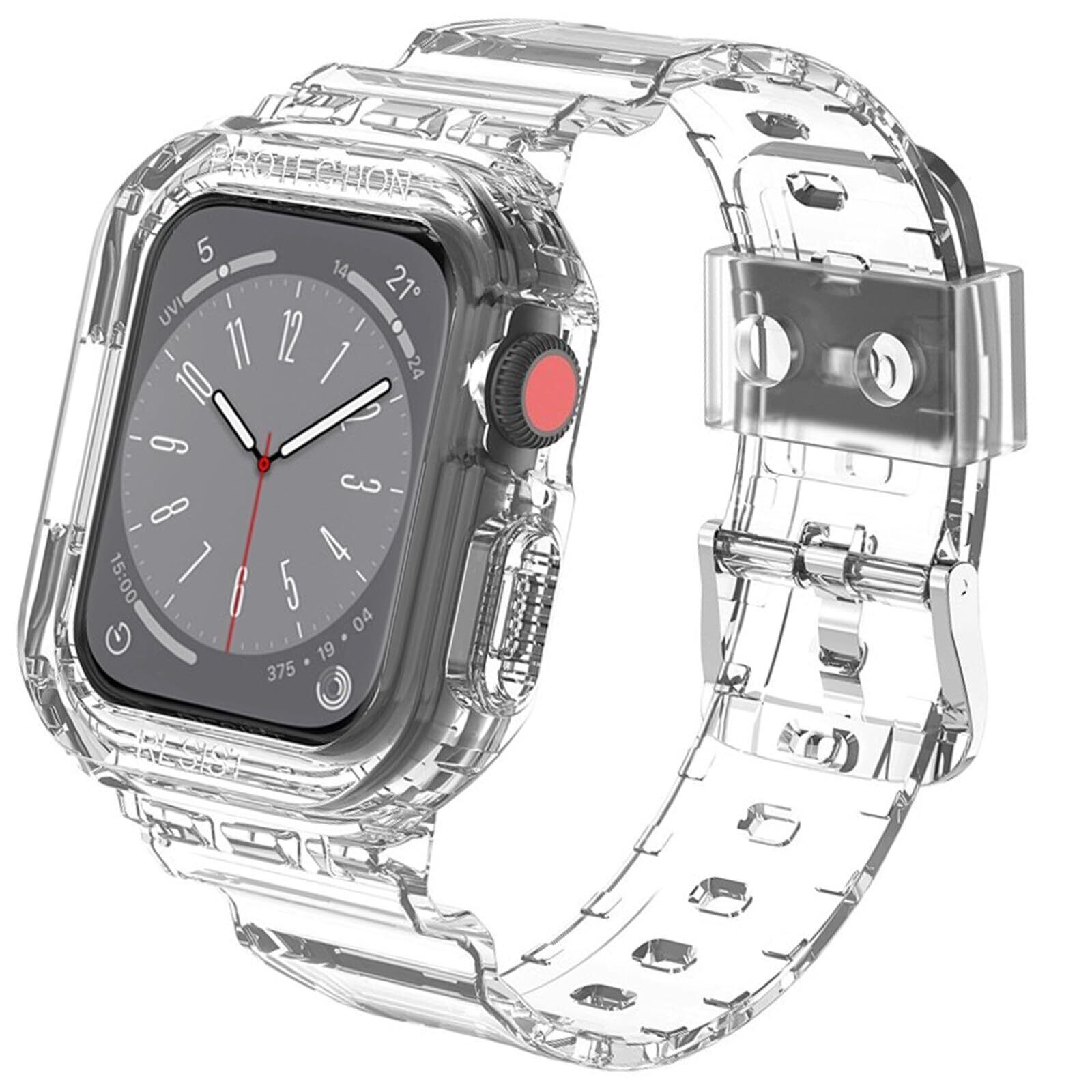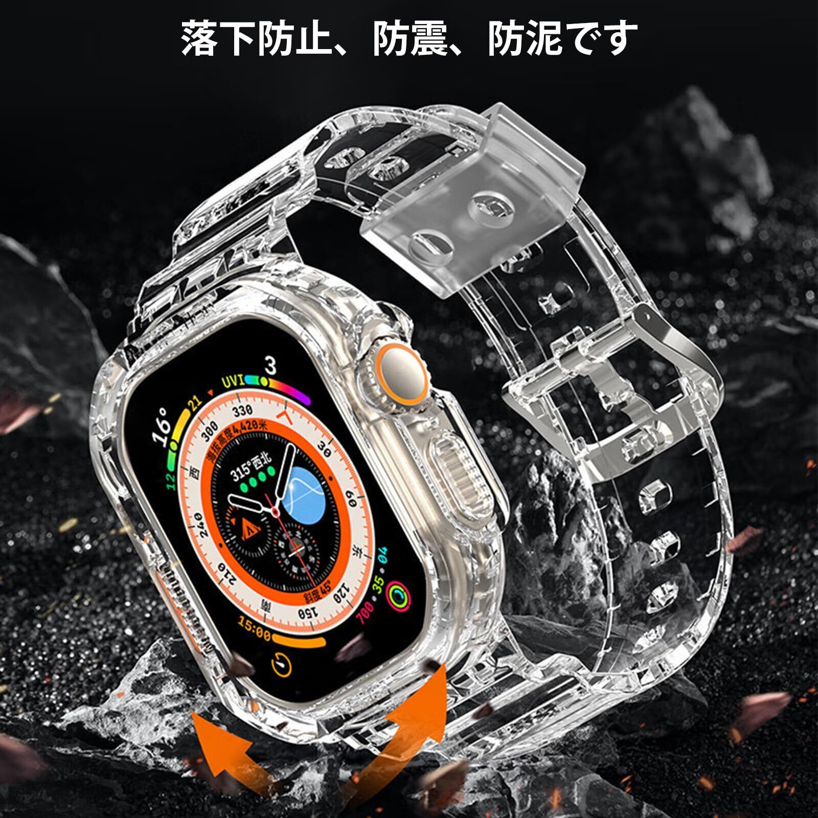 [KANOYO] Apple Watch バンド 対応 45mm 44mm 42mm 41mm 40mm 38mm アップルウオッチ バンド アップルウオッチ ベルト 一体型 全面保護 ケース 滑り止め 耐久性 落下防止 装着簡単 3Dフルカバーフィルム (41mm 40mm 38mmクリア)